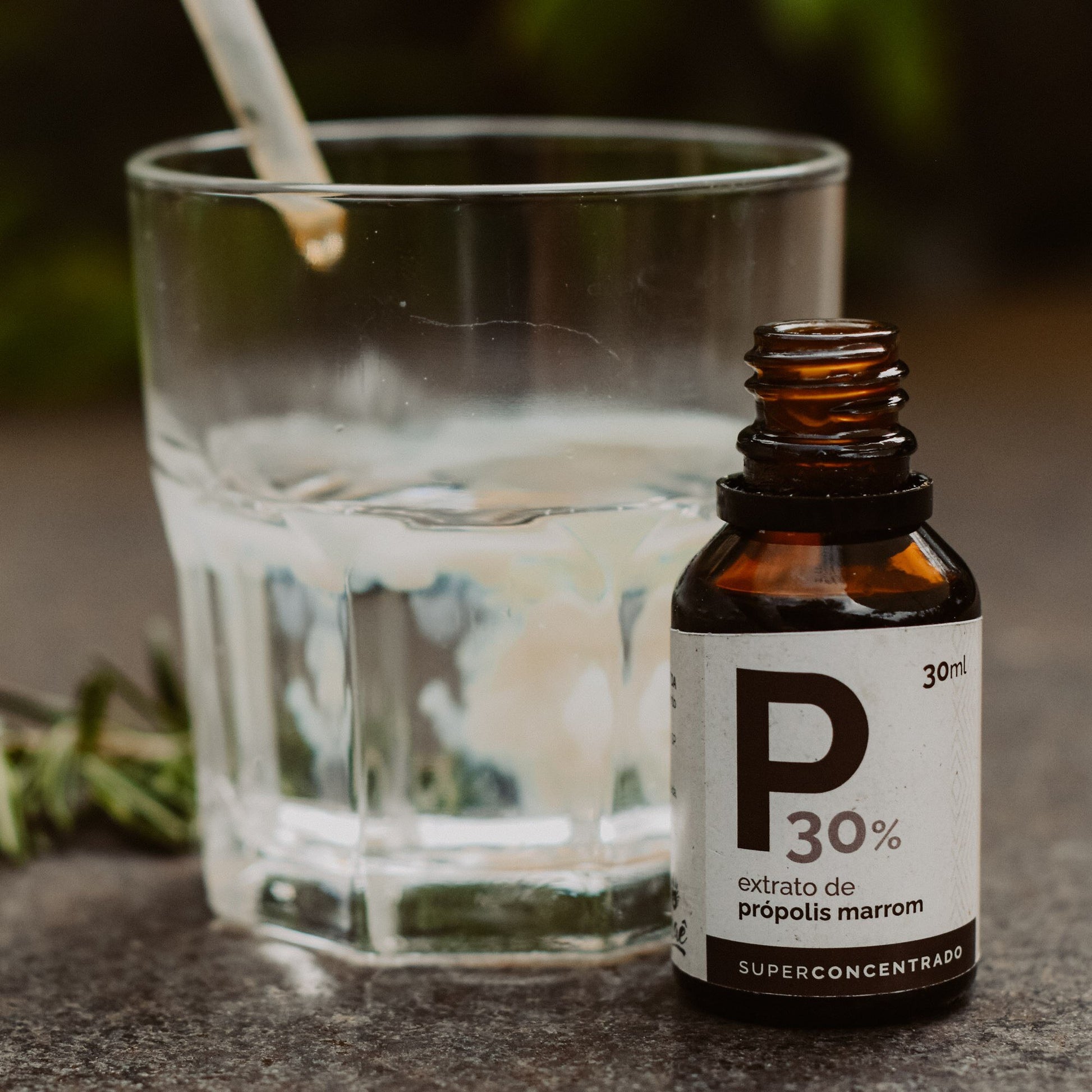 INGREDIENTES: Própolis verde (30%), álcool neutro grau alimentício(55%) e água purificada (15%).